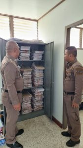 พ.ต.ท.นันทสิทธิ์ เล่งน้อย สวญ.สภ.ชุมแสง พ.ต.ท.อภิทักษ์ ยันทะรักษ์ สว.(สอบสวน) สภ.ชุมแสง พร้อมด้วยเจ้าหน้าที่ที่เกี่ยวข้อง ร่วมกันตรวจการลงวงแดง การลงบันทึกผลคดีในระบบคราม ให้เป็นปัจจุบัน ตรวจสอบห้องเก็บสำเนาสำนวน คดีอาญา จราจร และสำนวนไม่รู้ตัว และได้เน้นย้ำ กำชับให้จัดสำเนาสำนวนให้เป็นระเบียบเรียบร้อย สามารถค้นหาได้อย่างรวดเร็วเมื่อมีการสุ่มตรวจสำนวน โดยการแยกการจัดเก็บเป็นรายปีแล้วแยกเป็นมัด มัดละ ๒๐ สำนวน